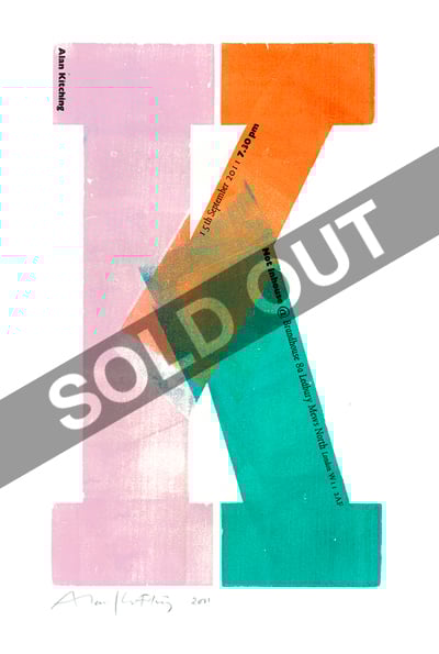 Alan Kitching came into talk in September 2011. He hand printed 50 of these using his wonderfully extensive letterpress library. We only have 2 prints left. Each print is £30, including P&P. Each print is signed and numbered.